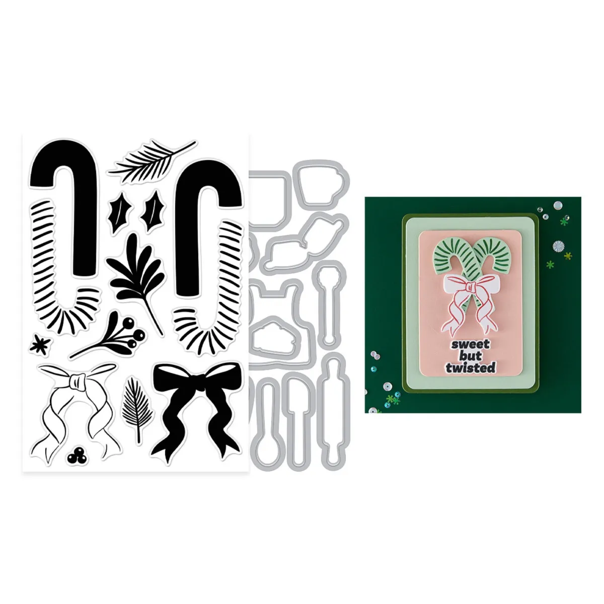 Das „Candy Cane Swag“ Stempel- und Stanzenset bietet dir einen klassischen Weihnachtslook mit elegantem Flair. Mit einer Kollektion aus klaren Stempeln und passenden Stanzformen kannst du Zuckerstangen-Bündel gestalten, die mit Schleifen, Stechpalmen und festlichem Grün geschmückt sind – perfekt, um stilvolle saisonale Arrangements zu kreieren.