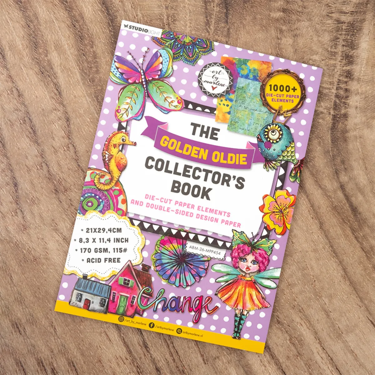 Mischpapier-Block von Art by Marlene. The Golden Oldie Collector's Book. 21,0 cm x 29,4 cm x 1,0 cm. 70 Blatt. Gestanzte Papier-Elemente und doppelseitiges Designpapier.