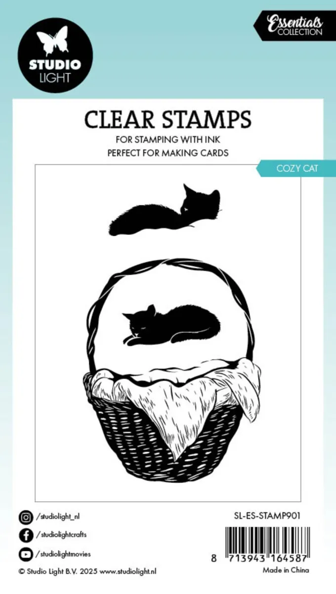 Essentials von Studio Light. Clear Stamp „Gemütliche Katze“. 5,3 x 8,9 x 0,3 cm. 3 Stück.