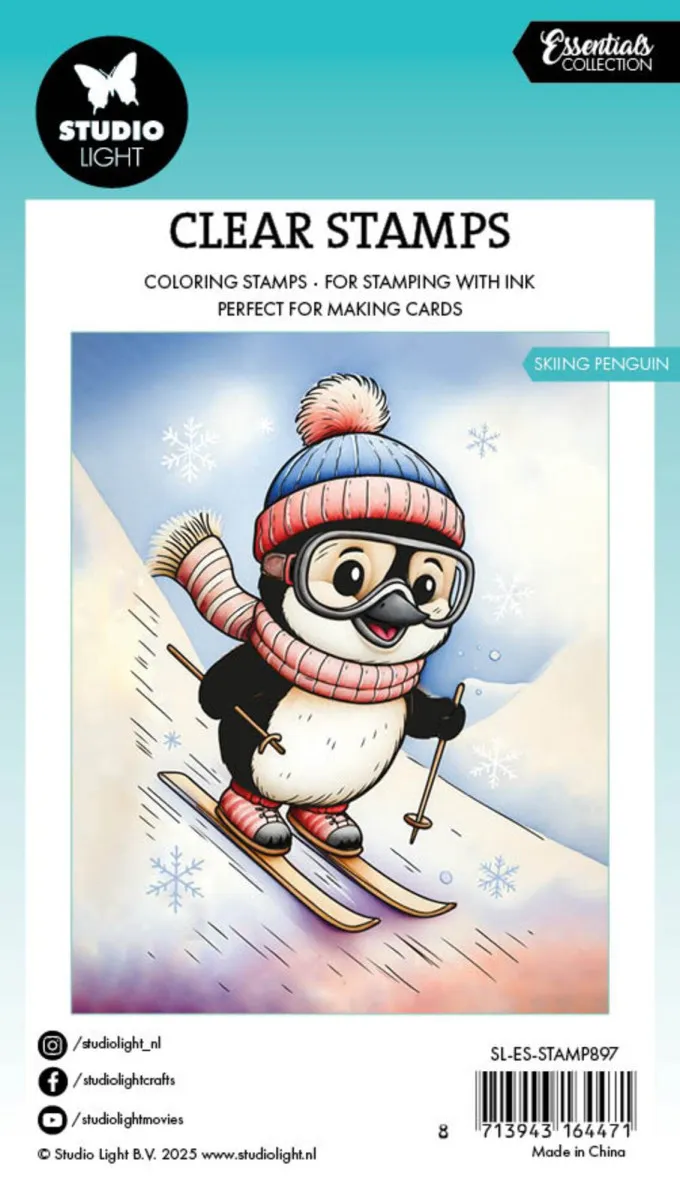 Essentials von Studio Light. Clear Stamp „Skiing Penguin“. 7,4 x 10,5 x 0,1 cm. 1 Stück.