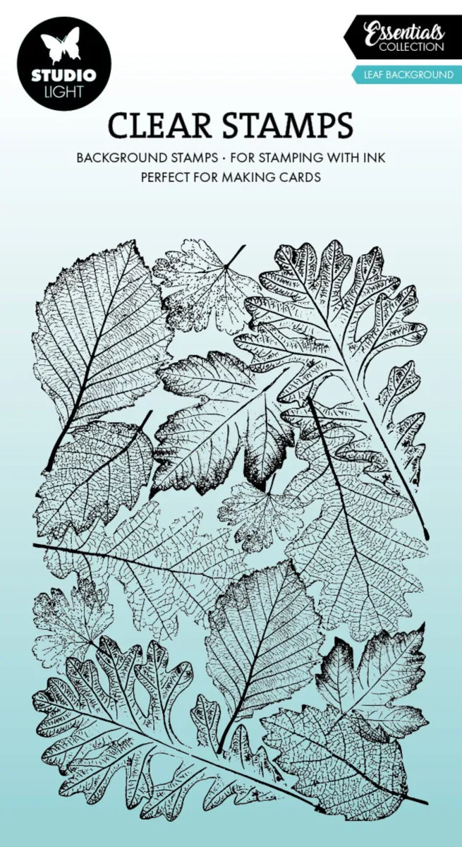 Essentials von Studio Light. Clear Stamp Leaf Background. Hintergrundstempel. Zum Stempeln mit Stempelfarbe. Perfekt zum Gestalten von Karten. Gesamtgröße: 93 x 136 x 3 mm. Inhalt: 1 Stück.