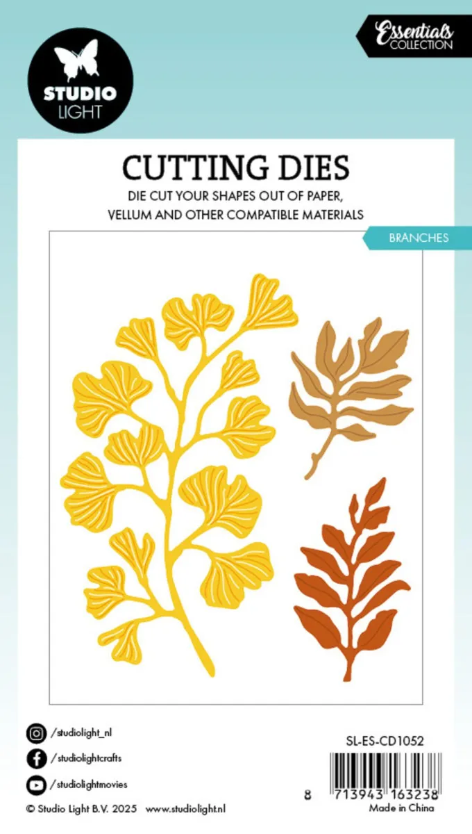 Essentials von Studio Light. Stanzschablone Branches. Herbstelemente. Stanze deine Motive aus Papier, Transparentpapier und anderen kompatiblen Materialien aus. Gesamtgröße: 77 x 86 x 1 mm. Inhalt: 3 Stück.