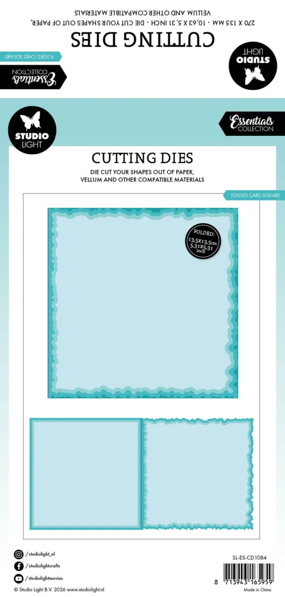 Essentials von Studio Light. Stanzform Torn Edge Folded Card Square. 27,0 x 13,5 x 0,1 cm. 5 Teile.