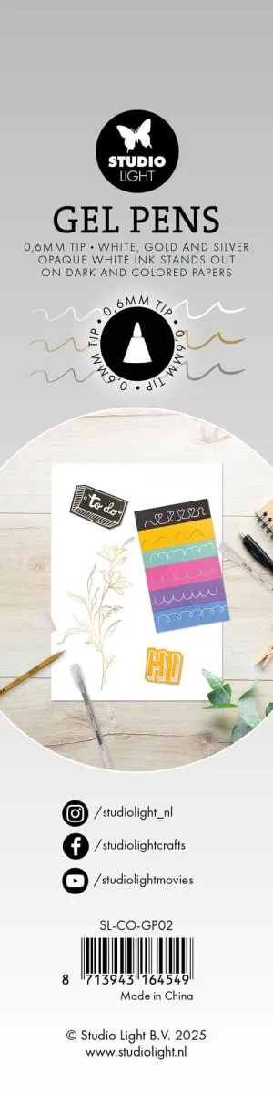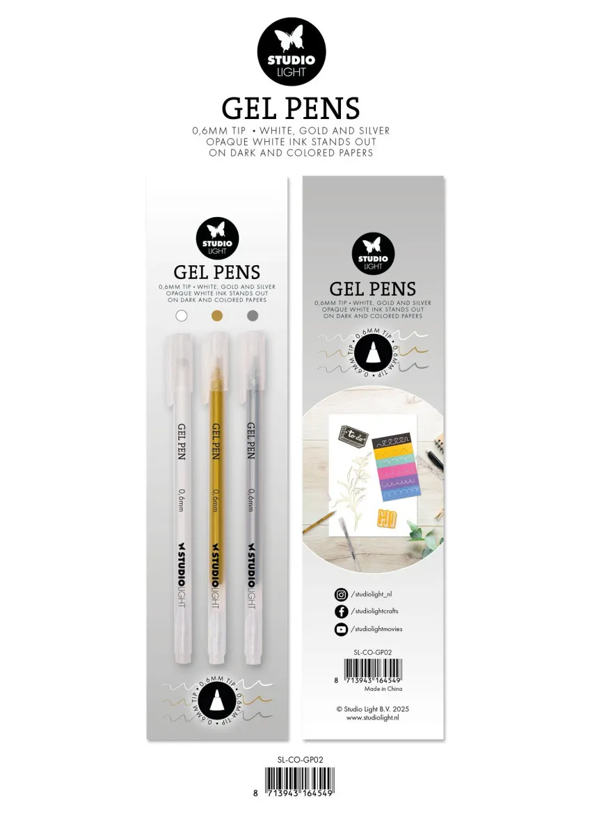 Verbrauchsmaterialien von Studio Light. Gelstifte in Weiß, Gold und Silber, 0,6 mm. 0,8 x 15,4 x 0,9 cm. 3 Stück.