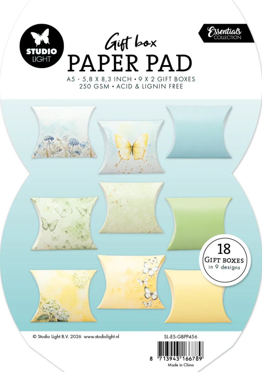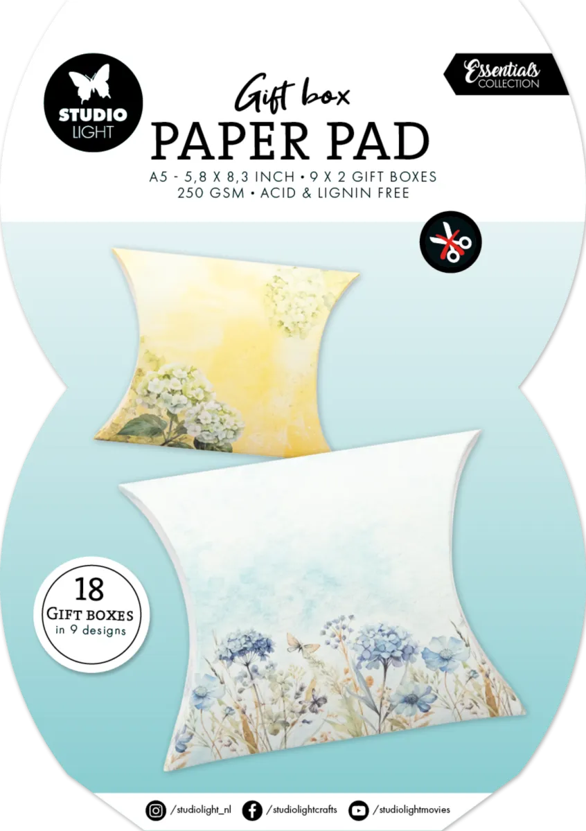 Dieses hochwertige Paper Pad aus der Essentials‑Kollektion von Studio Light bietet dir stilvolle Papierdesigns speziell für kleine Pillowbox‑Projekte. Du erhältst 18 vorgestaltete Pillowbox‑Layouts auf stabilem 250 g/m² Papier, säure‑ und ligninfrei – ideal zum Basteln, Dekorieren und Personalisieren deiner Verpackungen. Das Pad ist perfekt auf die restlichen Produkte der Studio Light Essentials‑Reihe abgestimmt und bringt dir kreative Vielfalt für besondere Anlässe.