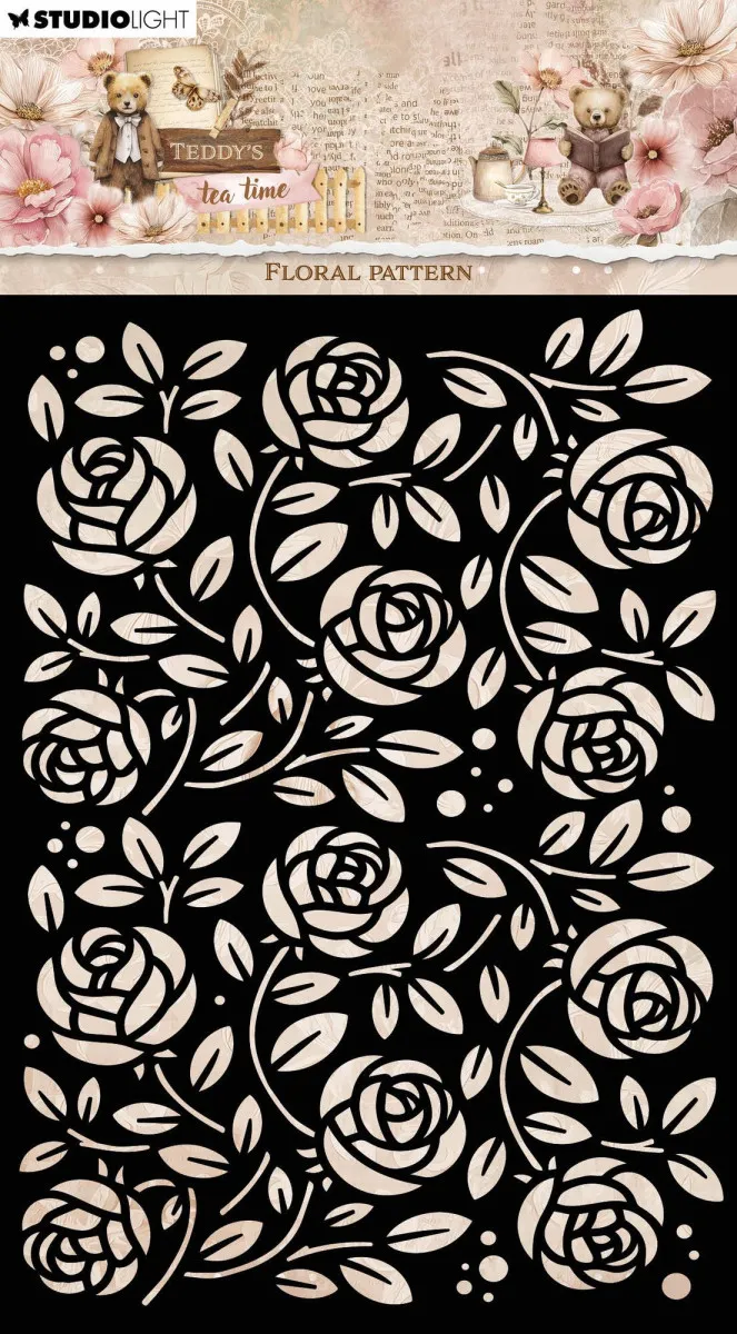Studio Light - Masks / Stencils - Teddy's Tea Time - Floral Pattern