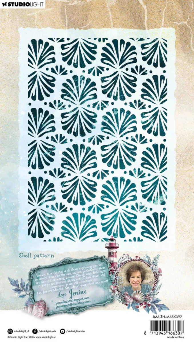 Tide of Hope von Jenine's Mindful Art. Schablone „Shell Pattern“. 148 x 210 x 1 mm. 1 Teil.