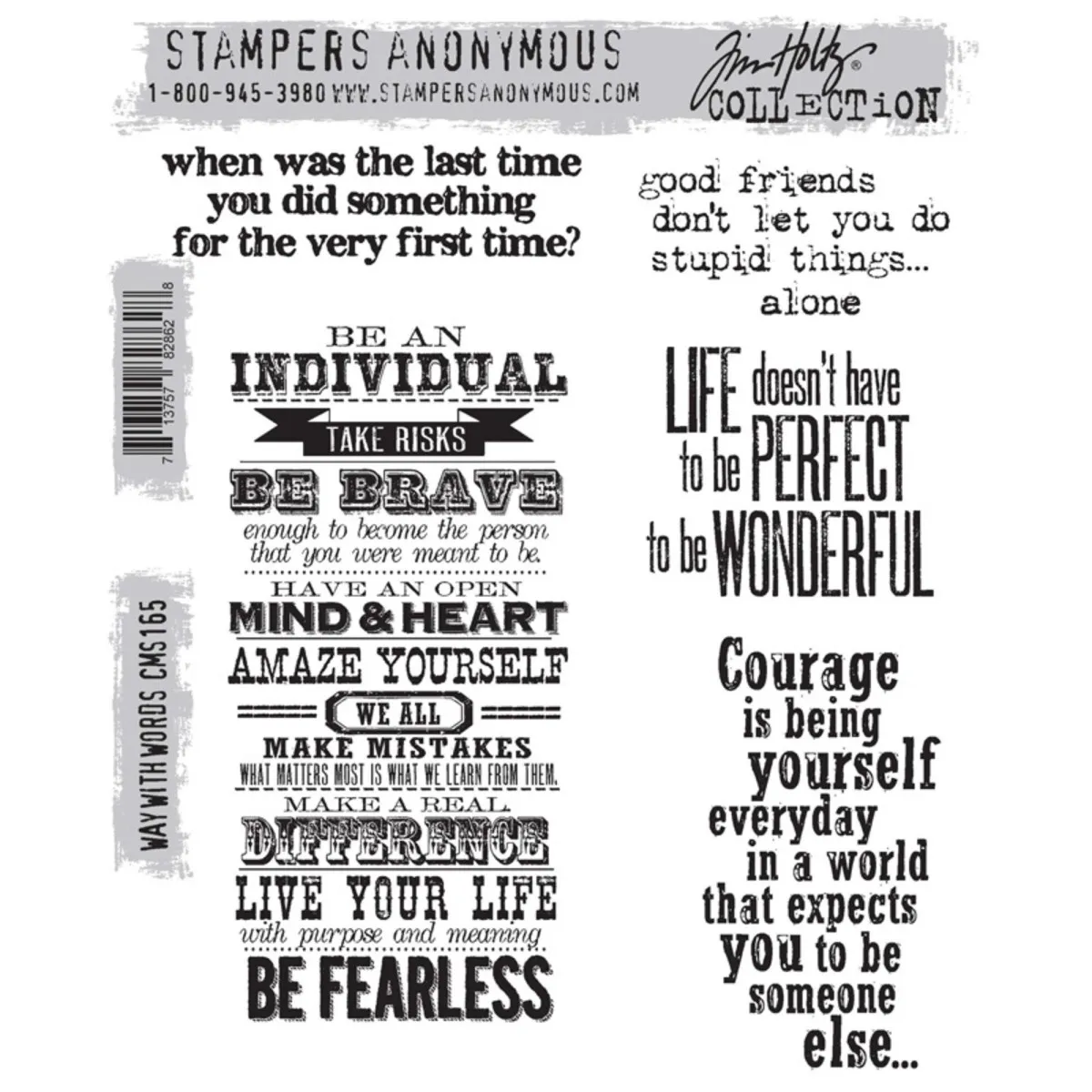 Diese undurchsichtigen Gummistempel sind auf Haftschaum montiert, so dass Du sie mit jedem Acrylblock (separat erhältlich) verwenden kannst. Ideal für die Verwendung mit Tims charakteristischen Distressing-Techniken! Die Stempel werden auf einem 3-Loch-Lochbogen geliefert, um sie einfach in einem Ordner aufzubewahren. Diese selbsthaftenden Gummistempeln werden auf einem 17,8 x 21,6 cm großen Trägerblatt befestigt geliefert.
