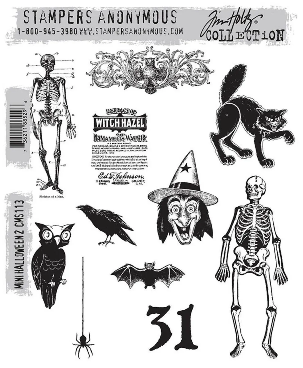 Elf tief geätzte rote Gummistempel mit Cling-Mount, die auf jeden klaren Acrylblock haften. Wir empfehlen die Verwendung mit den Tim Holtz Grid-Blocks.