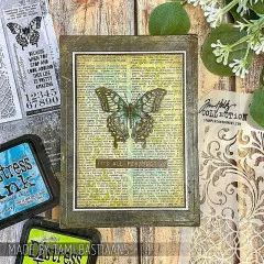 Das Tim Holtz Mixed Media Set enthält klare Photopolymer-Stempel und eine individuelle Layering-Schablone, mit denen du deinen Projekten Struktur und Motive verleihen kannst.