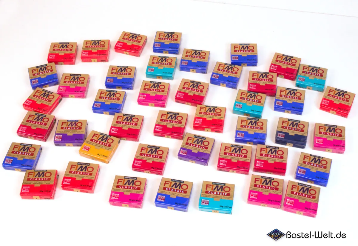 Ein echtes Schnäppchen für Kreative: In diesem Restposten-Paket erhältst du 43 Blöcke Fimo Classic Modelliermasse. Verkauf als Restpostenpaket, weil Fimo Modelliermasse leider unser Sortiment verlässt.