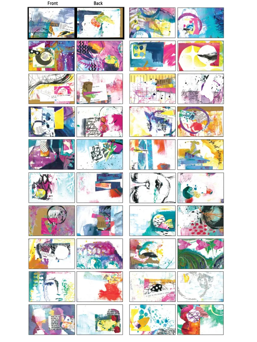Collage Sparks enthalten Seiten voller Originalkunstwerke von Dina Wakley. Sie zeigen bedruckte Seiten mit Kunstmotiven sowie inspirierende Zitate, die du direkt in all deinen Mixed-Media-Projekten und Art-Journaling-Seiten verwenden kannst.