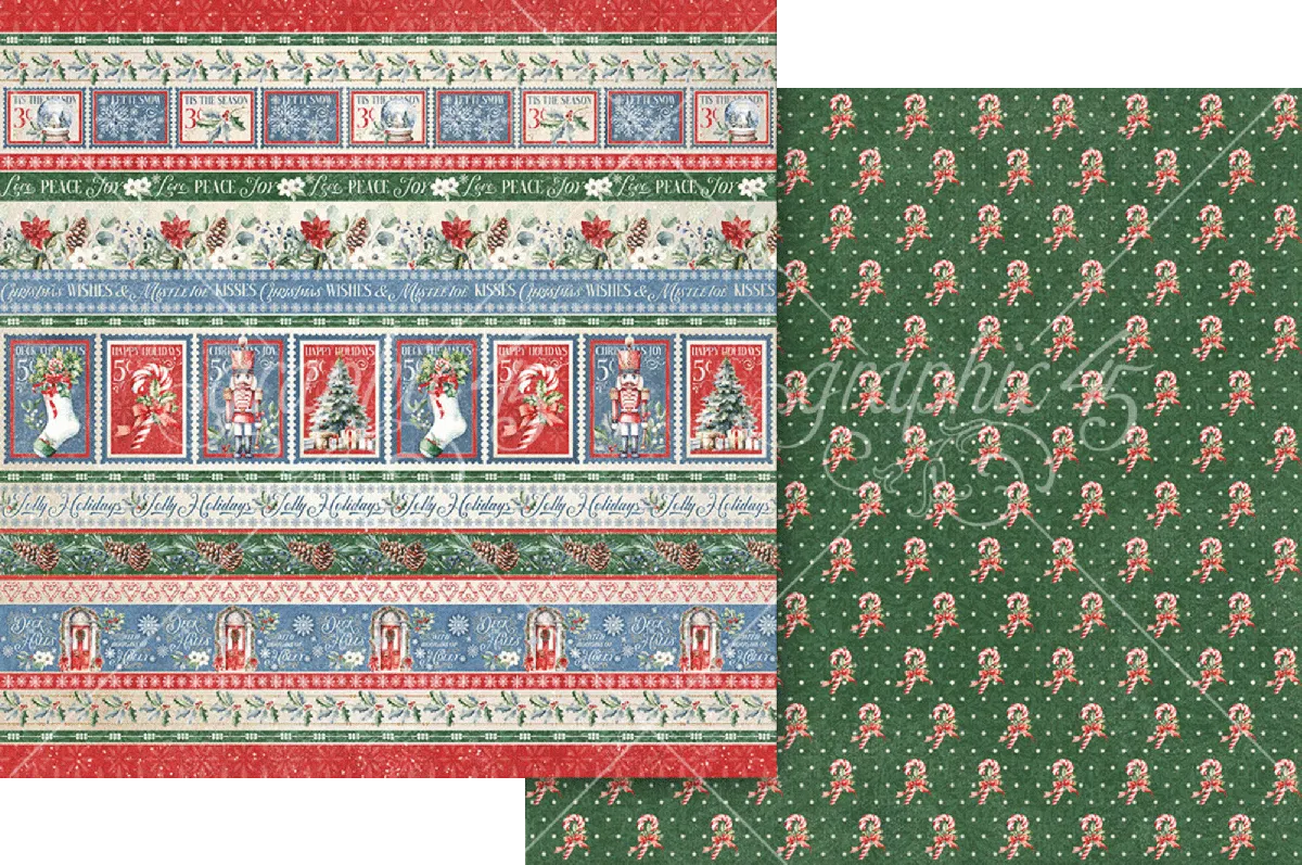 Feiere die Magie der Weihnachtszeit mit der Deck the Halls Papierkollektion von Graphic 45 – eine festliche Reise ins Herz der festlichen Freude. Diese bezaubernde Weihnachtskollektion ist voller klassischer Weihnachtsmotive, von Nussknackern und fröhlichen Strümpfen bis hin zu Tannenzapfen, Weihnachtssternen und Karomustern. Auf einer gemütlichen Farbpalette aus Cranberry-Rot, Tannengrün, zartem Creme und frostigem Blau eingefangen, bringt Deck the Halls die nostalgische Wärme von Zuhause zu den Feiertagen auf deine Bastelprojekte.