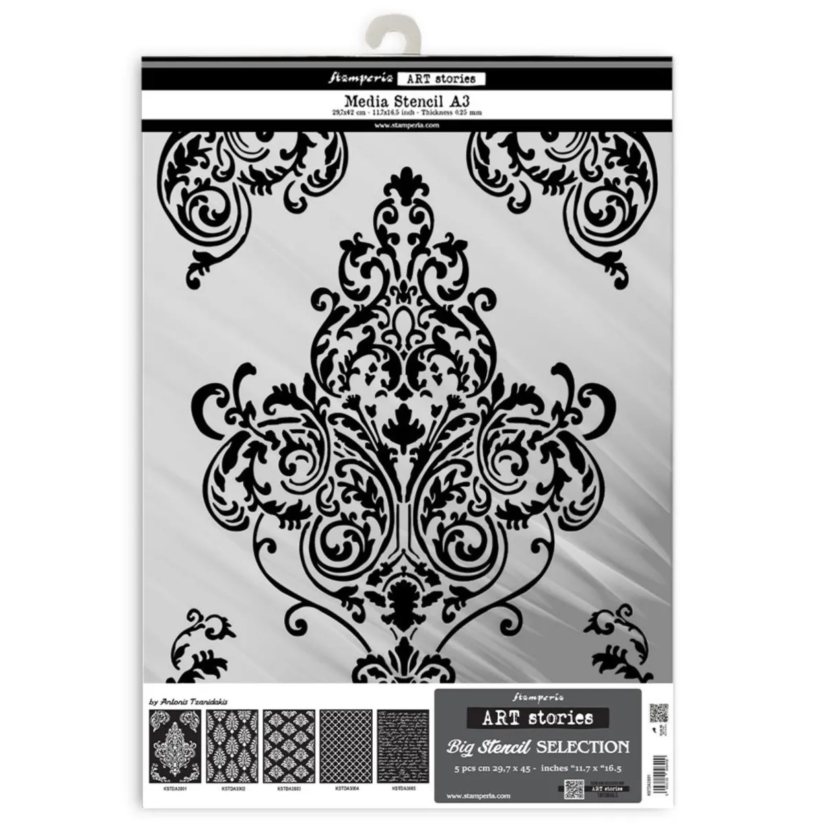 Probiere 5 einzigartige großformatige Schablonen aus. Verwende sie mit Farben oder Pasten, um markante Designs zu erstellen – und entdecke dabei deine Favoriten. Geeignet für Journaling, Karten und kleine Projekte. Die Dicke beträgt 0,25 mm. Nach der Verwendung waschbar.