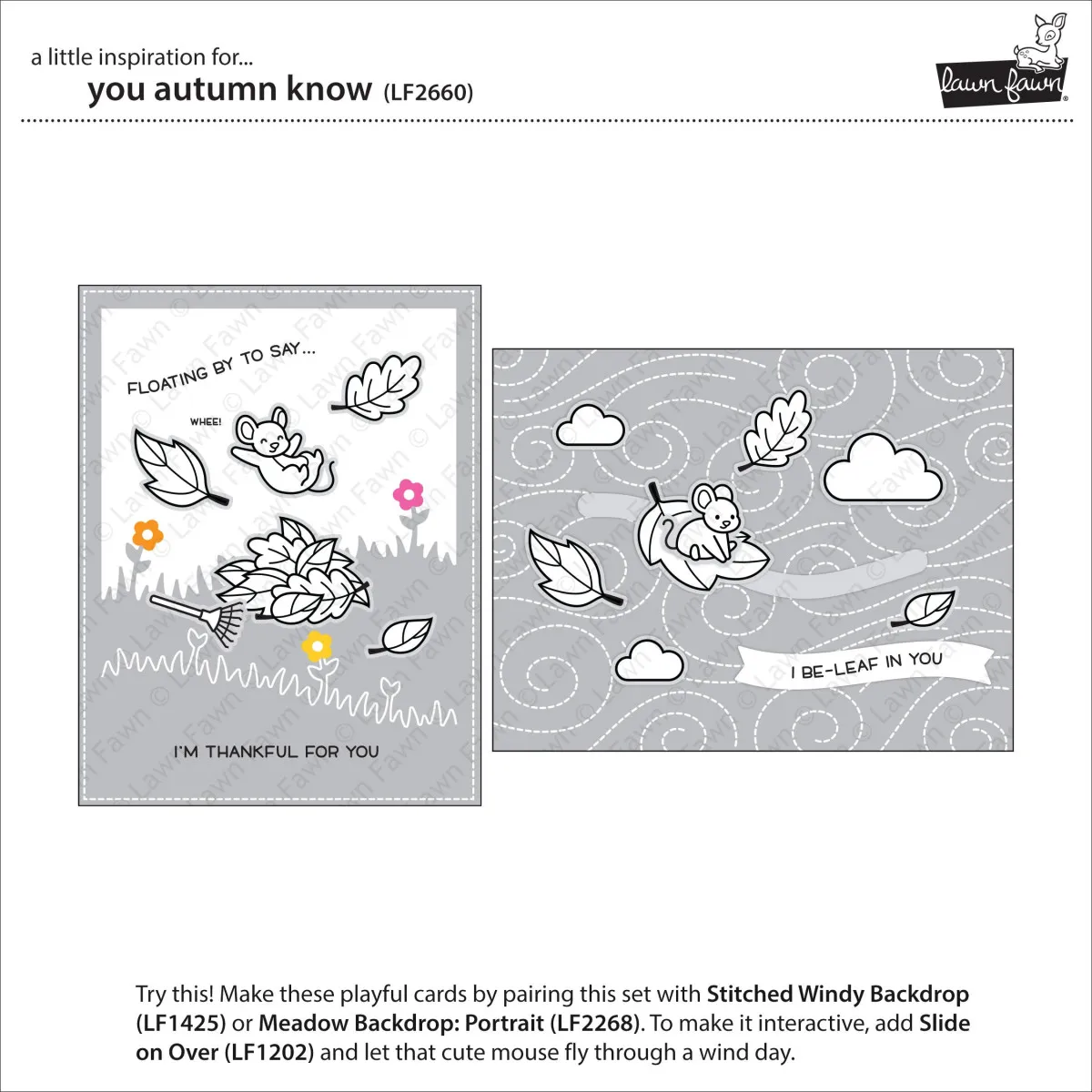 Passende Set-Ideen: Kombiniere diese süßen Mäuse und Blätter mit dem Stitched Windy Backdrop für ein windiges Herbstdesign. Füge „Slide on Over“ hinzu, um ein interaktives Element zu gestalten! Erschaffe eine schöne Herbstszene mit dem „Fall Leaves Backdrop“ oder gestalte einen Hintergrund mit der „Fall Leaves Background“-Schablone! Sie passen wunderbar zu all unseren niedlichen Mäusen!